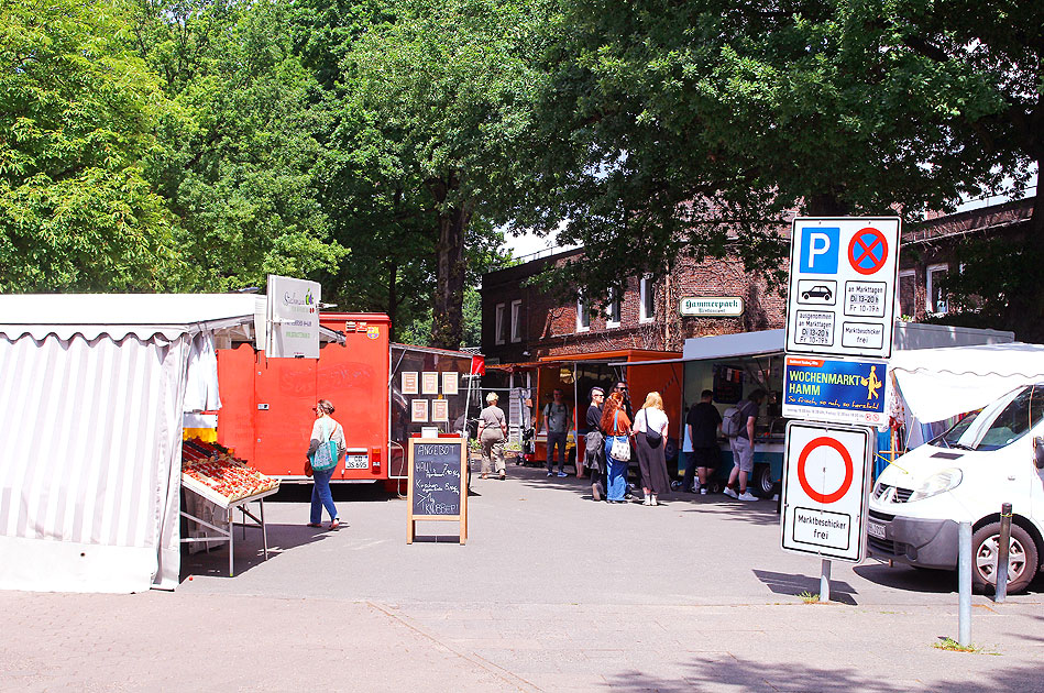 Tipp für Hamburger und Hamburg-Besucher: Es muss nicht immer der Isemarkt sein, Hamburg hat noch viel mehr Wochenmärkte. Der Wochenmarkt Hamm gegenüber der Hammer Kirche findet dienstags von 15 bis 18.30 und freitags von 12.30 bis 18 Uhr statt. Das Besondere an diesem Markt ist das er im Grünen am Rande und im Hammer Park in der Straße Bei der Vogelstange stattinfindet. Der Markt selbst ist etwas kleiner und übersichtlich. Aber wer hier kein Obst und Gemüse kaufen möchte, man kann hier auch am Imbiss etwas essen und trinken. Zu erreichen ist der Markt mit der U-Bahn bis Hammer Kirche oder mit dem Bus bis: "Beim Hammer Marktplatz". Digi Foto: IMG_8894.JPG Digi Fotos: 0382, FP10 (D4/D7/#+25) Foto: Lars Brüggemann |
