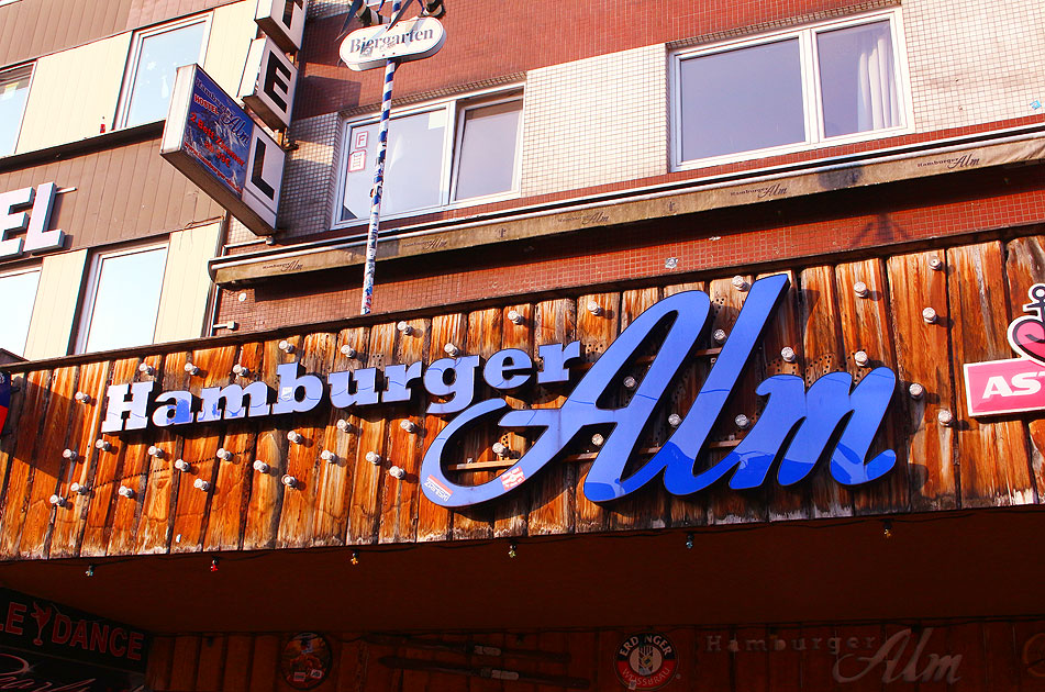 Die Kneipe Hamburger Alm auf der Reeperbahn in Hamburg auf St. Pauli. Hier kann man feiern, tanzen und zu trinken. Dazu gibt es hier noch Hamburger Alm Hotel. Die Postanschrift ist Reeperbahn 54. Digi Foto: IMG_9931.JPG Digi Fotos: 0377, FP10 (D10/d2/#+24) Foto: Lars Brüggemann |