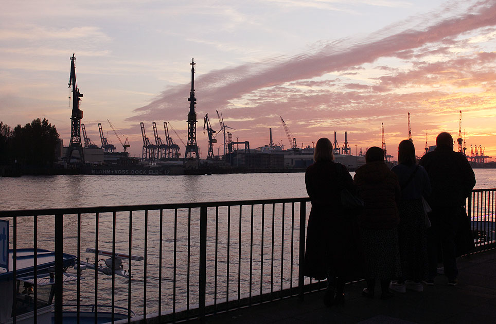 Sonnenuntergang an den St. Pauli Landungsbrücken in Hamburg: Von den Aussichtsplattformen an den Landungsbrücken hat man eine besonders schöne Aussicht auf den Hafen, die Elbe, die Schiffe und eben den Sonnenuntergang. Digi Foto: IMG_7081.JPG Digi Fotos 0373, FP10 (D18/D10/#+24) Foto: Lars Brüggemann |