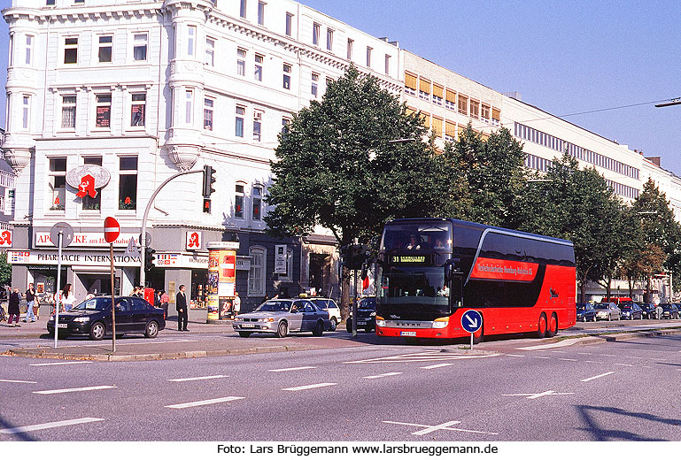 Der VHH Setra-Doppeldeckerbus 0331 auf der HVV-Schnellbuslinie 31 von Lauenburg ZOB nach Hamburg Rödingsmarkt, hier an der Haltestelle Hamburg Hbf / ZOB, aufgenommen am 7. Oktober 2005. Dia 11.005-2 Foto CD033 Foto: Lars Brüggemann |