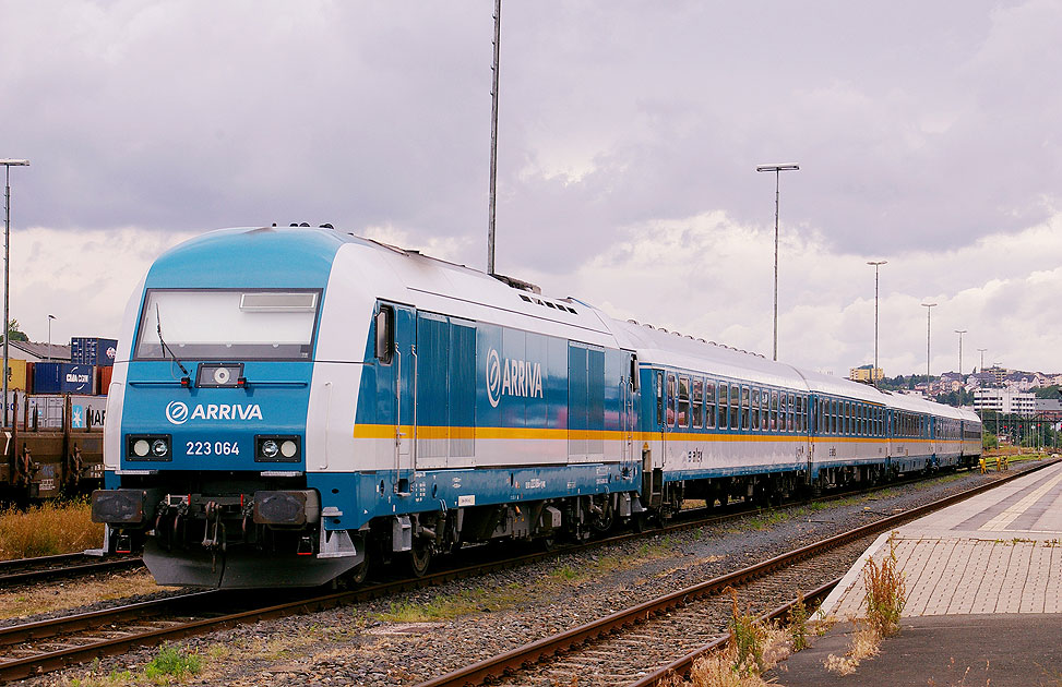 Die Arriva / Alex Lok 223 064 ein Eurorunner von Siemens mit Alex-Wagen in Hof Hbf. Digitalfoto: IMGP8522.JPG Digi Fotos: 0190 (D7/D7/D2009) Foto: Lars Brüggemann Interner Vermerk: Dieses Foto ist noch unter einem anderen Dateinamen online. |