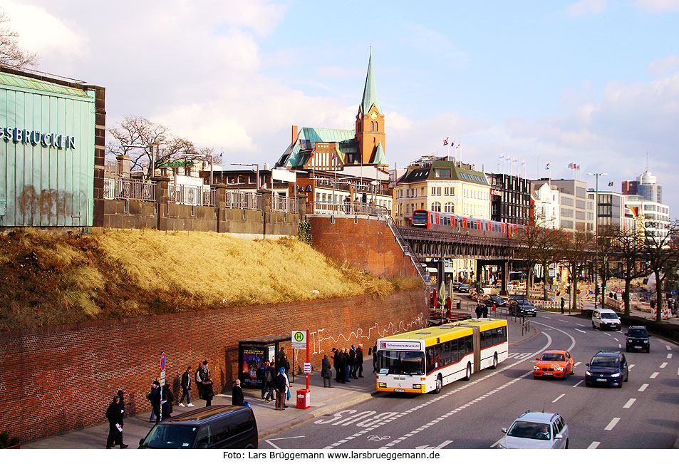 An einer der Bushaltestellen vom Bahnhof Landungsbrücken in Hamburg hält am 9. März 2018 ein MB O 405GN2 vermutlich von Bentours Busverkehr GmbH mit dem Kennzeichen HI BT 801, im SEV-Einsatz für die Hamburger S-Bahn. Digi Foto: IMG_8876.JPG Digi Fotos: 0294 Foto: Lars Brüggemann |