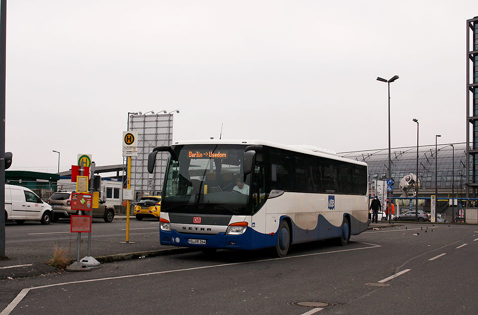 Ein Fernbus der Usedomer Bäderbahn (UBB) mit dem Kennzeichen VG VR 264 vor dem Berliner Hauptbahnhof (Berlin Hbf). Dieser Bus fährt als Fernbus von Berlin auf die Insel Usedom. Digi Foto: IMG_0666.JPG Digi Fotos: 0340 (D19/D1/#+21) Foto: Lars Brüggemann |