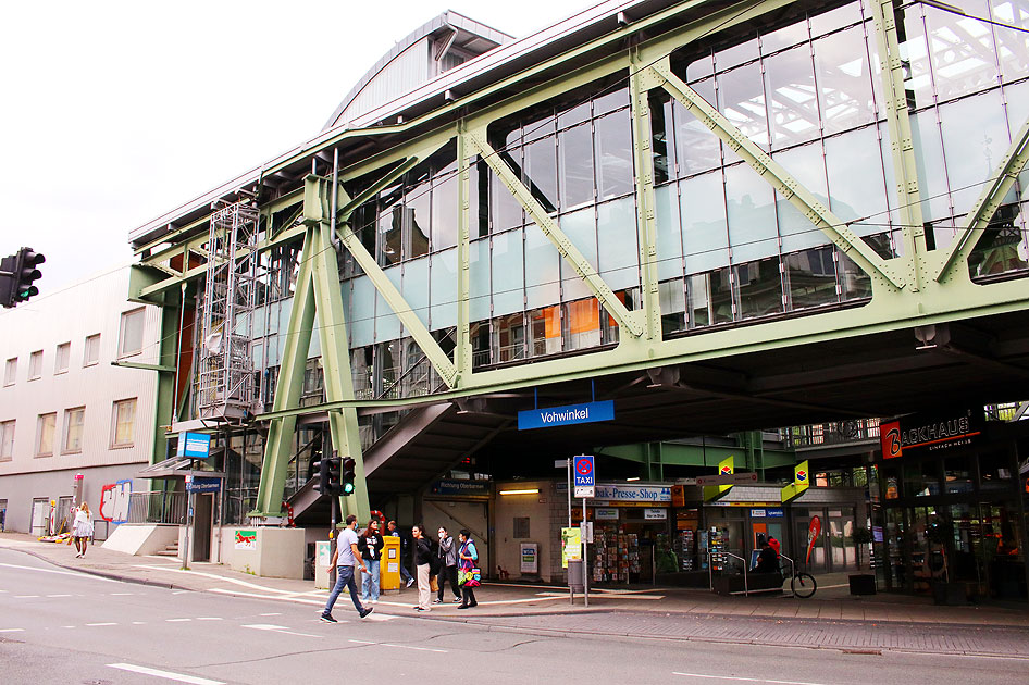 Die Schwebebahnstation Vohwinkel der Schwebebahn in Wuppertal. Vohwinkel liegt am Ende der Landstrecke und beherbergt das Schwebebahndepot. In Vohwinkel besteht Anschluss an den Obus nach Solingen. Digi Foto: IMGP6721.JPG Digi Fotos: 0190 (D24/D7/#+09) Foto: Lars Brüggemann |