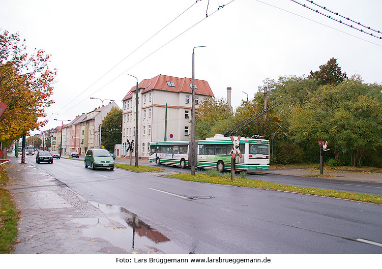 Hier überquert die EFE die Heegermühler Straße, in der Bildmitte ein Eberswalder Obus. Digi Foto: IMGP3003.JPG Dig Fotos: 0193 (D15/D10/#+09) Foto: Lars Brüggemann |