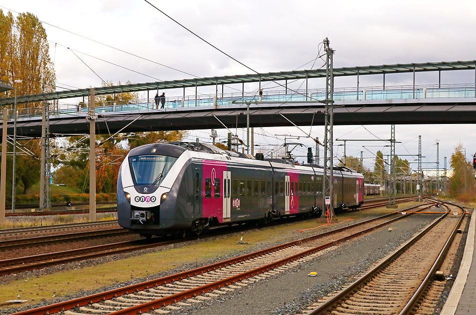 Der Enno-Triebwagen 94 80 1440112-9-D-L in Braunschweig Hbf als Eilzug nach Hildesheim Hbf. Dieser Triebwagen ist Coradia Continental von Alstom. Diese Triebwagen verfügen über Rollstuhlrampen und behindertengerechte Toiletten. Digi Foto: IMG_5470.JPG Digi Fotos: 0280 Foto: Lars Brüggemann |