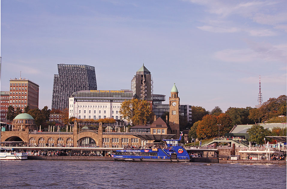 Das HADAG Schiff Wilhelmsburg in blau und in der Bildmitte grüßt mit: "Moin Hamburg". Oben im Bild die Tanzenden Türme, das Hotel Hafen Hamburg und mittig links das Abfertigungsgebäude der St. Pauli Landungsbrücken. Ja, das hier ist ganz klar in Hamburg! Digi Foto: IMG_3918.JPG Digi Fotos: 0379, FP10 (D18/D10/+#24) Foto: Lars Brüggemann |