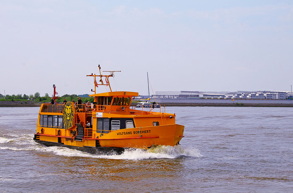 Das HADAG-Schiff Wolfgang Borchert kommt über die Elbe gleich an den Anleger Teufelsbrück über die Elbe in Hamburg gefahren. Die HADAG ist ein öffentliches Verkehrsmittel im HVV (Hamburger Verkehrsverbund) und wickelt den Fährverkehr im Hamburger Hafen und auf der Elbe in Hamburg ab. Die HADAG wurde 1888 als Reederei mit dem Namen: "Hafendampfschiffahrts-Actien-Gesellschaft" gegründet. Das Schiff ist hier unterwegs als Linie 68 von Airbus (Schiffsanleger) nach Teufelsbrück. Die Linie 68 ist jedoch keine reguläre HADAG-Linie, diese verkehrt nur an Arbeitstagen bei Airbus und ist nur für Werksangehörige. Digi Foto: IMG_4976.JPG Digi Fotos: 0284, FP5 (D23/D5/#+17) Foto: Lars Brüggemann |