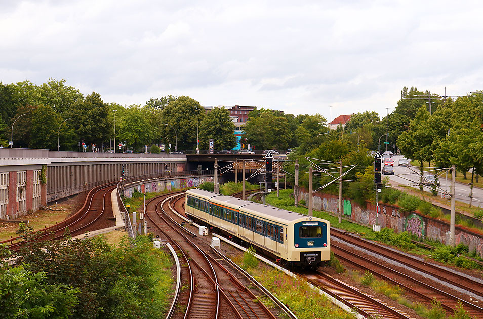 Auf seiner Jungfernfahrt am 13. Juli 2024 als Museumszug der Hamburger S-Bahn verlässt der 472 262 den Bahnhof Berliner Tor nach Ohlsdorf. Der Zug wurde im Mai 1984 an die Deutsche Bundesbahn nach Hamburg ausgeliefert. Die Endwagen wurden bei LHB in Salzgitter gefertigt, der Mittelwagen jedoch bei MBB in Donauwörth. Im März 2022 endete der Fahrgasteinsatz der Baureihe 472 bei der Hamburger S-Bahn, von 2021 bis 2024 wurde der 472 262 zum Musuemszug zurückgebaut und umlackiert so dass er am 13. Juli 2024 erstmals in den Fahrgasteinsatz kam. Digi Foto: IMG_2031.JPG Digi Fotos: 0370, FP10 Foto: Lars Brüggemann |