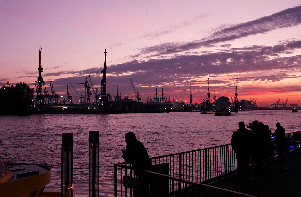 Sonnenuntergang an den St. Pauli Landungsbrücken in Hamburg: Von den Aussichtsplattformen an den Landungsbrücken hat man eine besonders schöne Aussicht auf den Hafen, die Elbe, die Schiffe und eben den Sonnenuntergang. Digi Foto: IMG_7081.JPG Digi Fotos 0373, FP10 (D18/D10/#+24) Foto: Lars Brüggemann |