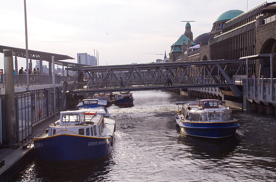 Die Barkassen Gebrüder Wriede II und Gebrüder Wriede I an den St. Pauli Landungsbrücken in Hamburg. Mit einer Barkasse kann man die wohl schönsten Hafenrundfahrten machen, doch die Meinungen könnten hier auseinander gehen. Digi Foto: IMGP2783.JPG Digi Fotos: 0239, FP3 (D21/D8/#+13) Foto: Lars Brüggemann |
