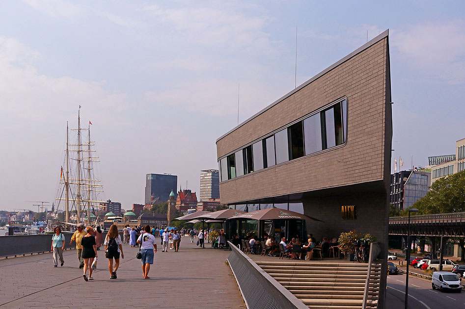 Das Alex an der Überseebrücke ist ein Restaurant in bester Lage mit schöner Aussicht zwischen den Landungsbrücken und Baumwall in Hamburg. Das Alex ist aber nicht nur ein Restaurant in schöner Atmosphäre, es ist auch ein Cafe und eine Bar. Im Bild die bekannte Uferpromenade mit dem Namen: Jan-Fedder-Promenade. Die Jan-Fedder-Promenade führt von den Landungsbrücken zum Baumwall entlang der Elbe. Links das Alex, in der Mitte die Elbphilharmonie und rechts mittig die Überseebrücke. Digi Foto: IMG_3287.JPG Digi Fotos: 0370, FP10 (D15/D7/+#24) Foto: Lars Brüggemann |