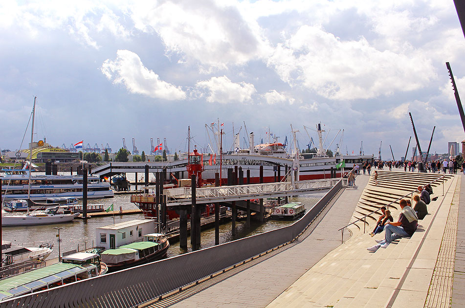 Die Überseebrücke liegt an der Jan-Fedder-Promenade zwischen den Landungsbrücken und Baumwall. Wer die Cap San Diego besichtigen möchte, der muss auf die Überseebrücke. Die Überseebrücke wurde 1927 im Auftrag der Reederei Hamburg Süd gebaut und diente zunächst als Anlegestelle für Fahrgastschiffe nach Übersee, so auch der Name Überseebrücke. Digi Foto: IMG_0670.JPG Digi Fotos: 0370, FP10 ((D15/D7/#+24) Foto: Lars Brüggemann Facebook-Seite Hamburg Landungsbrücken - larsbrueggemann.de |