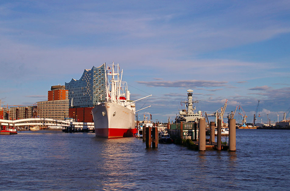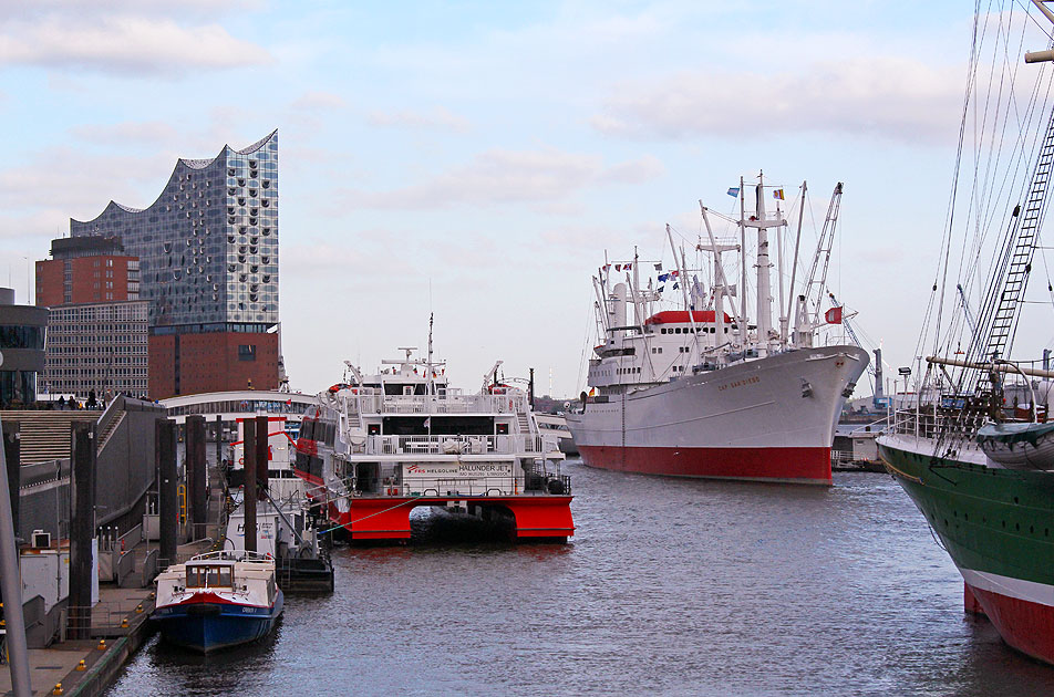 In der Bildmitte die Cap San Diego an der Überseebrücke und rechts im Bild die Elbphilharmonie. Wer das Schiff besichtigen möchte, der muss auf die Überseebrücke. Die Cap San Diego wurde von 1961 bis 1962 für die Reederei Hamburg-Süd gebaut und wurde bis 1981 eingesetzt. Dieses Schiff vermittelt Hamburger Geschichte und Seefahrtsgeschichte. Übrigens: Man kann auf der Cap San Diego auch übernachten. Digi Foto: IMG_3025.JPG Digi Fotos: 0370, FP10 (D15/D7/+#24) Foto: Lars Brüggemann |