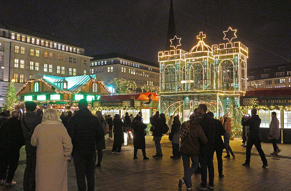 Auf dem Hamburger Rathausmarkt ist der größte und wohl auch schönste Hamburger Weihnachtsmarkt. Der Roncalli-Weihnachtsmarkt ist schon etwas ganz Besonderes. Dieser Weihnachtsmarkt füllt den ganzen Rathausmarkt mit allem und viel mehr was auf einem Weihnachtsmarkt sein muss. Dieser Weihnachtsmarkt ist in Gassen aufgeteilt: Handwerkergasse, Goldgasse, Kaufmannsgasse, Weihnachtsgasse, Naschgasse, Spielzeuggasse, Spezialitätengasse. Die Gassen werden von der Mittelachse, dem historischen Karussell und dem Hamburger Tor ergänzt. Dazu gibt es hier einen fliegenden Weihnachtsmann. Dieser Weihnachtsmarkt ist besonders gut mit der U-Bahn oder S-Bahn bis Jungfernstieg, U-Bahn Rathaus oder mit dem Bus bis Rathausmarkt zu erreichen. Dieser Weihnachtsmarkt ist noch bis zum 23. Dezember 2025. Digi Foto: IMG_1809.JPG - interner Vermerk ###Monat 12 - Tag 14### Digi Fotos: 0386, FP10 (D25/D11/+#25) Foto: Lars Brüggemann |