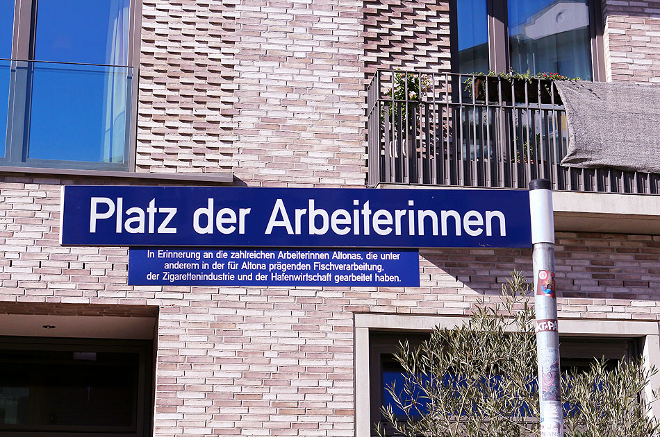 Dies hier ist in Hamburg und nicht in Eisenhüttenstadt! In der Neuen Mitte Altona gibt es den "Platz der Arbeiterinnen" ohne großes "Ihh". Dieser Platz und sein Name sollen den Arbeiterinen in Altona gedenken wie denen aus der Fischverarbeitung, Zigarettenindustrie und Hafenwirtschaft. Die Neue Mitte Altona ist ein Neubaustadtteil in der sich wohl kaum eine eine einfache Arbeiterin eine Wohnung leisten kann. In der DDR (Deutsche Demokratische Republik) gab es in Dresden einen Platz der Bauarbeiter und einen Platz der Eisenbahner. So erinnert dieser Platz der Arbeiterinnen etwas an DDR-Zeiten. Digi Foto: IMG_5517.JPG Digi Fotos: 0383, FP10 (D23/D8/#+25) Foto: Lars Brüggemann |