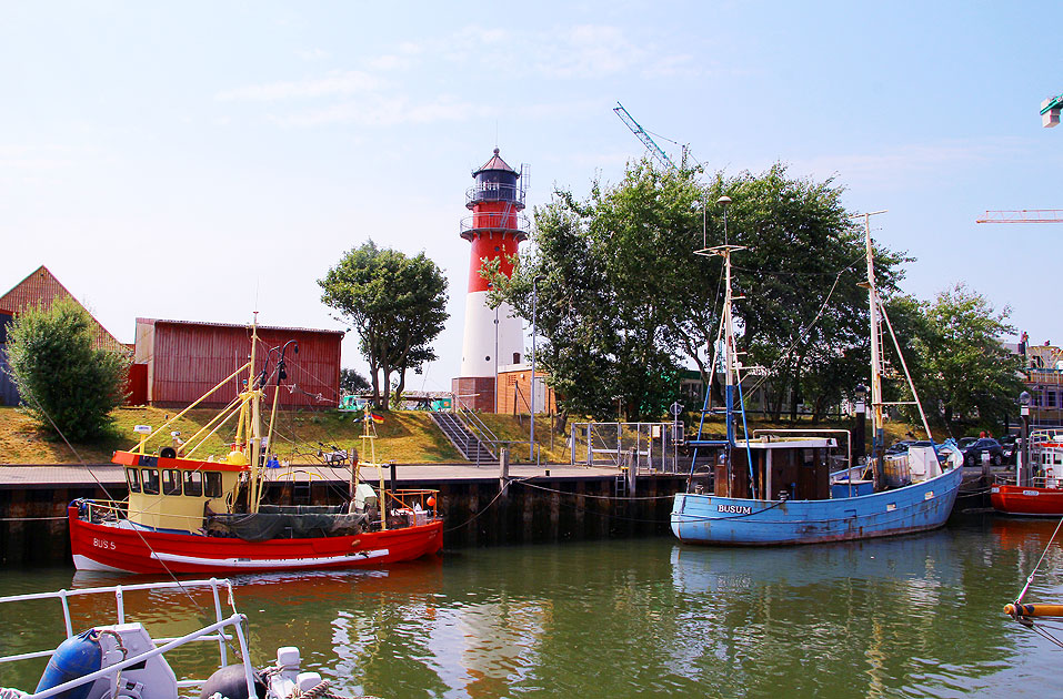 Im Hafen Büsum liegen hier zwei Fischkutter. In der Bildmitte oben, der 21,4 Meter hohe Leuchtturm von 1912/1913. Büsum ist von Hamburg-Altona mit einmal umsteigen in Heide bequem mit der Bahn zu erreichen. Von Büsum kann man zahlreiche Schiffsausfahrten machen wie nach Helgoland, Fahrten zu Seehundsbänken, Küstenfahrten oder Fangfahrten. Sonst liegt Büsum direkt an der Nordsee, so kann man hier direkt ans Wasser. Mit dem Krabbenexpress kann man Rundfahrten durch Büsum machen. Digi Foto: IMG_3007.JPG Digi Fotos: 0299 (D9/D8/hafen18) Foto: Lars Brüggemann |