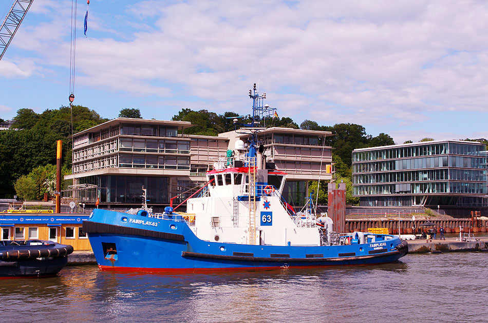 Der Schlepper Fairplay 63 in Höhe von Neumühlen in Hamburg auf der Elbe. Die Hafenschlepper gehören zum festen Bild im Hamburger Hafen. Die Faiplay gehört zur Fairplay Schleppdampfschiffs-Reederei / Fairplay Towage Group. Digi Foto: IMG_9853.JPG Digi Fotos: 0380, FP10 (D8/schif5/#+25) Foto: Lars Brüggemann |