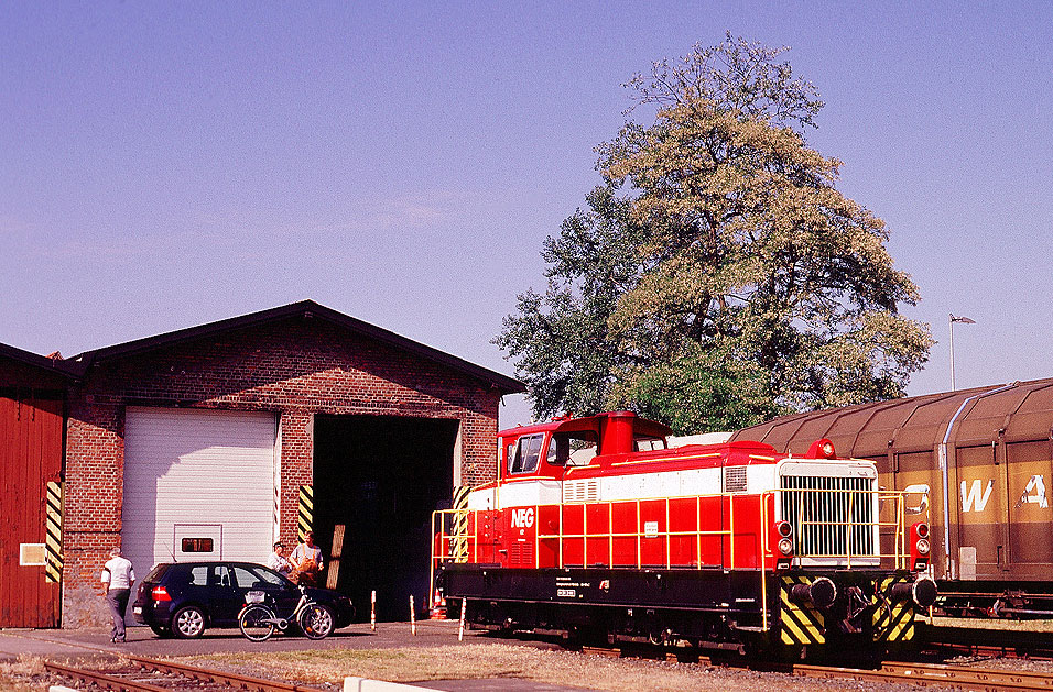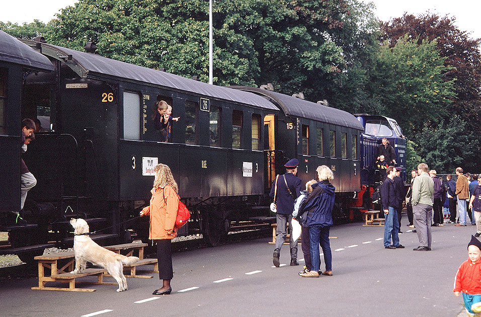 Am 13. September 2001 fuhr dieser VVM-Sonderzug zwischen Uetersen und Tornesch, hier steht in Uetersen Ost im Betriebswerk der Uetersener Eisenbahn. dia9998-1 Foto CD Zusammenfassung Foto: Lars Brüggemann |