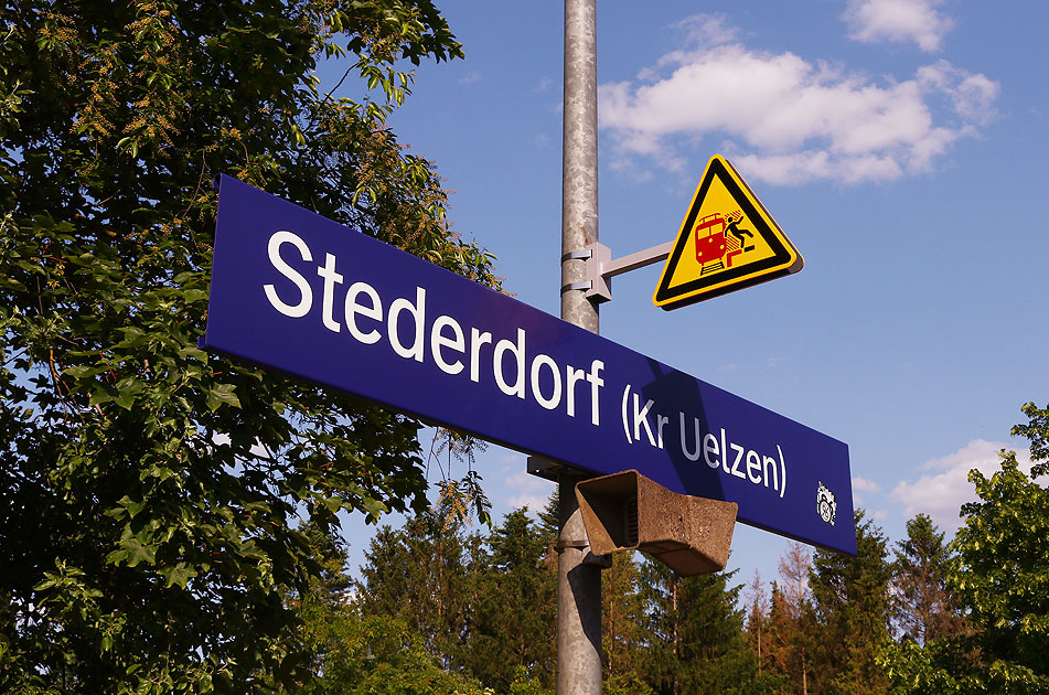 Ein neuzeitliches Bahnhofsschild auf dem Bahnsteig vom Bahnhof Stederdorf (Kreis Uelzen) an der Bahnstrecke von Uelzen über Salzwedel nach Stendal. Digi Foto: IMG_4245.JPG Digi Fotos: 0357 (D5/D6/#+23) Foto: Lars Brüggemann |