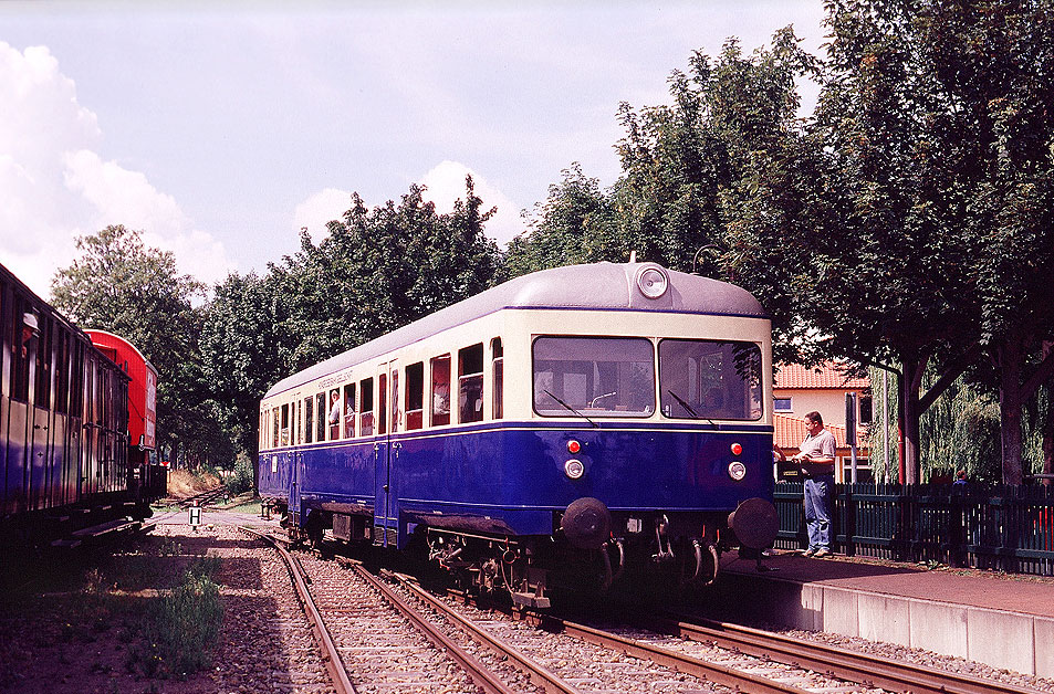 Es ist ja eher unüblich Straßen und Plätze nach noch lebenden Personen zu benennen. Vom Bahnhof Bruchhausen-Vilsen zum Bahnhof Vilsen Ort führt der Kindermannweg entlang der Museumsbahn von Bruchhausen-Vilsen nach Asendorf. Benannt wurde der Weg nach Renate und Harald O. Kindermann den Gründern der ersten Museumsbahn in Deutschland. Am 2. Juli 1966 wurde die erste Museumsbahn-Eisenbahn Deutschlands eröffnet. Die Museumsbahn ist heute ein großer Gewinn für den Ort Bruchhausen-Vilsen und die Museumsbahn hatte auch ihren Erfolg dank der Unterstützung der Gemeinde, so profitieren beide voneinander. Im Kindermannweg befindet sich auch das Gartenbahncafe Volldampf in dem man seine Getränke per Lehmann Gartenbahn (LGB) an den Platz bekommt. Zum Glück gibt es von LGB auch einige Fahrzeuge die beim DEV als Vorbild fahren wie der Wimsarer Schienenbus T 41 mit dem kurzen Namen: "Maus". Digi Foto: IMG_4733.JPG Digi Fotos: 0347 (D7/D8/+#22) Foto: Lars Brüggemann |
