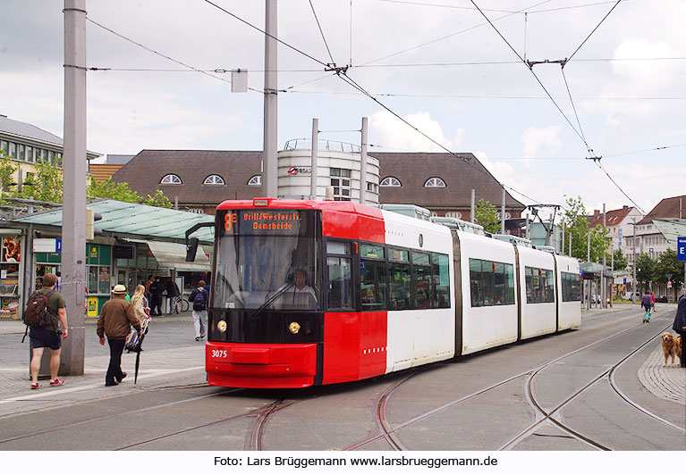 Mit Elektromobilität durch Bremen: Der BSAG Straßenbahn-Niederflur-Wagen 3075 an der Haltestelle Hauptbahnhof in Bremen. Digitalfoto: IMGP5472.JPG Digi Fotos 0249 (D14/D6/D2014) Foto: Lars Brüggemann |