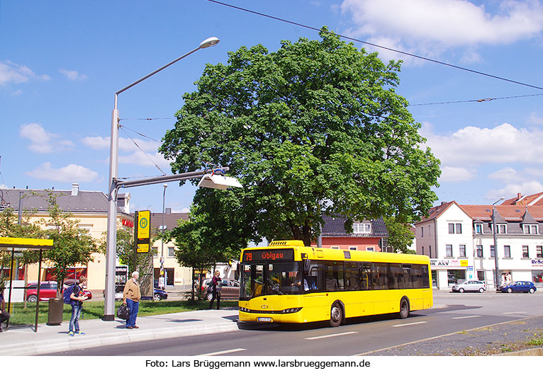 Der DVS 930 201-7 auf der Linie 79 nach Übigau an der Haltestelle Mickten. Links im Bild der Lademast für den Elektrobus der Linie 79. Digi Foto: IMGP8001.JPG Digi Fotos: 0261 (D10/D6/strassenbahn15) Foto: Lars Brüggemann |
