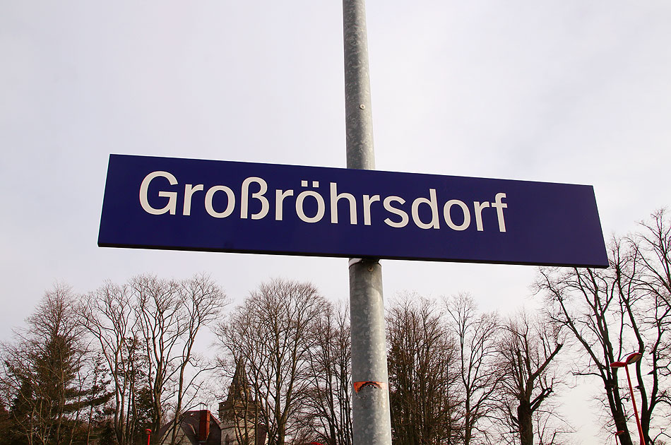 Ein Bahnhofsschild auf dem Bahnsteig im Haltepunkt (Bahnhof) Großröhrsdorf an der Bahnstrecke (Pirna) - Radeberg nach Kamenz - (Lübbenau). Die Bahnstrecke von Pirna nach Lübbenau über Großröhrsdorf war anfangs vorrangig für den Transport von böhmischer Braunkohle in die Oberlausitz geplant und gebaut, der Personenverkehr spielte in der Planung anfangs eher eine untergeordnete Rolle. Im Personenverkehr wurde die Strecke in Fahrplänen immer in zwei Abschnitte aufgeteilt: Kamenz - Arnsdorf / Radeberg und Arnsdorf - Pirna. Zwischen 2010 und 2019 wurde die Strecke von Radeberg nach Kamenz von der Städtebahn Sachsen im Personenverkehr im Auftrag vom Verkehrsverbund Oberelbe (VVO) bedient. Digitalfoto: IMG_4065.JPG Digi Fotos: 0330 (D3/D3/bügel21) Foto: Lars Brüggemann |