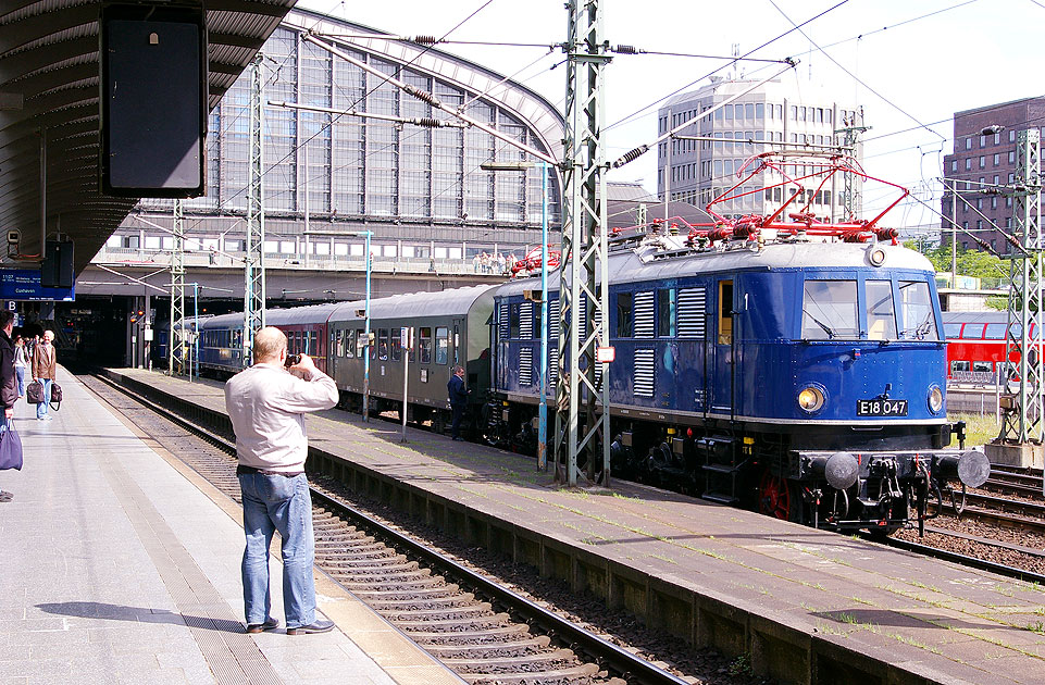 Die E 18 047 mit einem Sonderzug zum Hafengeburtstag in Hamburg im Hamburger Hauptbahnhof am 9. Mai 2009. Digi Foto: IMGP7729.JPG Digi Fotos: 0188 Foto: Lars Brüggemann Interner Vermerk: Dieses Foto ist noch unter einem anderen Dateinamen online. |