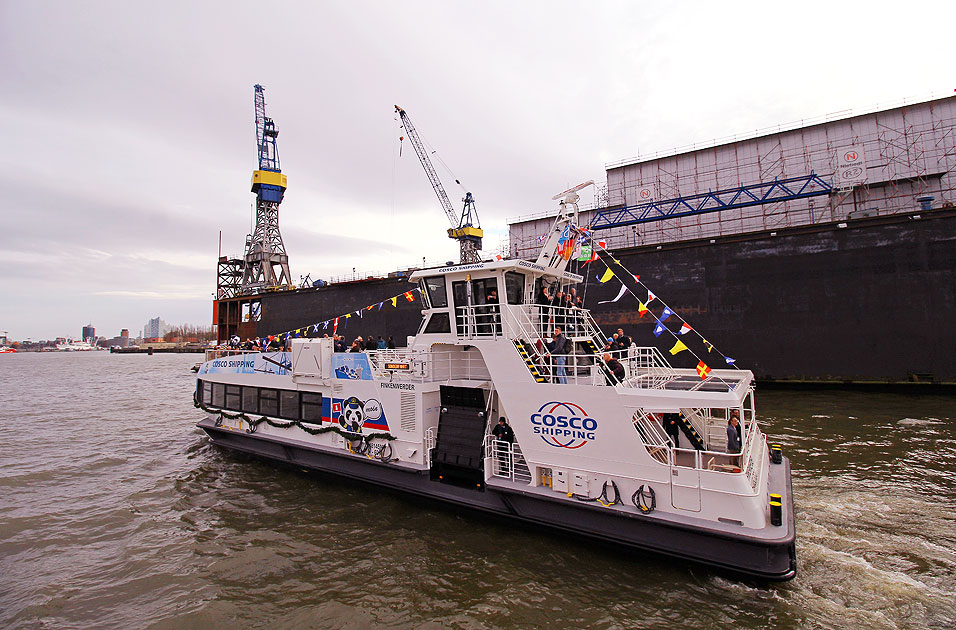 Gerade erst wurde sie am 25. November 2024 getauft, das HADAG-Schiff Finkenwerder IV, hier ist sie auf der Jungfernfahrt mit Ehrengästen. Oben vorne auf dem Schiff: Der Cosco Shipping-Pandabär. Dieses Schiff wirbt für die Reederei Cosco Shipping Lines. Die HADAG ist ein öffentliches Verkehrsmittel im HVV (Hamburger Verkehrsverbund) und wickelt den Fährverkehr im Hamburger Hafen und auf der Elbe in Hamburg ab. Die HADAG wurde 1888 als Reederei mit dem Namen: "Hafendampfschiffahrts-Actien-Gesellschaft" gegründet. Digi Foto: IMG_0975.JPG Digi Fotos: 0374, FP10 Foto: Lars Brüggemann |