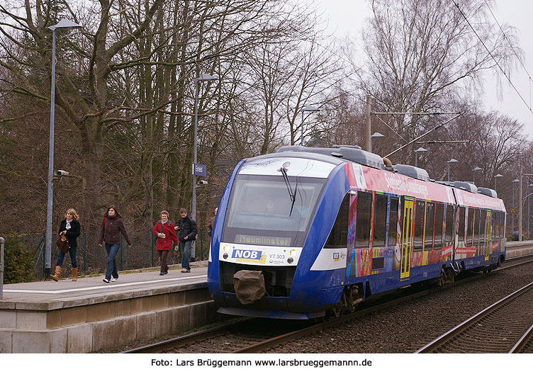 Der NOB-Lint VT 304 als Nahverkehrszug von Kiel Hbf nach Neumünster Hbf im Bahnhof Bordesholm. Digitalfoto: IMGP1680.JPG Digi Fotos: 0186 (D26/D3/+#09) Foto: Lars Brüggemann |