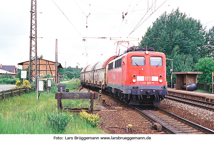 Die 140 687-5 mit einem Güterzug im Bahnhof Radbruch am 31. Mai 2005. Dia 9104-6, Festplatte 1 Foto: Lars Brüggemann |