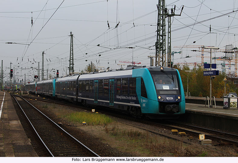 Der NOB-Lint-Triebwagen 622 166 wendet als Eilzug aus Westerland auf Sylt zur Rückfahrt zurück nach Westerland am 13. November 2016 in Hamburg-Altona. Bedingt durch den Ausfall der NOB-Marschbahnwagen fährt hier wie auf dem Foto zu sehen diese dreiteilige Lint-Garnitur. Digitalfoto: IMG_6591.JPG Digi Fotos: 0278 Foto: Lars Brüggemann Fotos von Eisenbahnen, digital als jpg für Veröffentlichungen? Oder dieses Foto für die Onlinenutzung, Werbung oder für Bücher schreiben Sie mir! Vielleicht möchten Sie Ihren Kunden oder Besuchern den Weg zu Ihnen mit einem Foto beschreiben? Email an Lars Brüggemann: mail@larsbrueggemann.de Dieses Angebot richtet sich nicht an bildersammelnde Eisenbahnfreunde zur kostenlosen Zusendung (für "private Zwecke"). zurück zur: Startseite |
