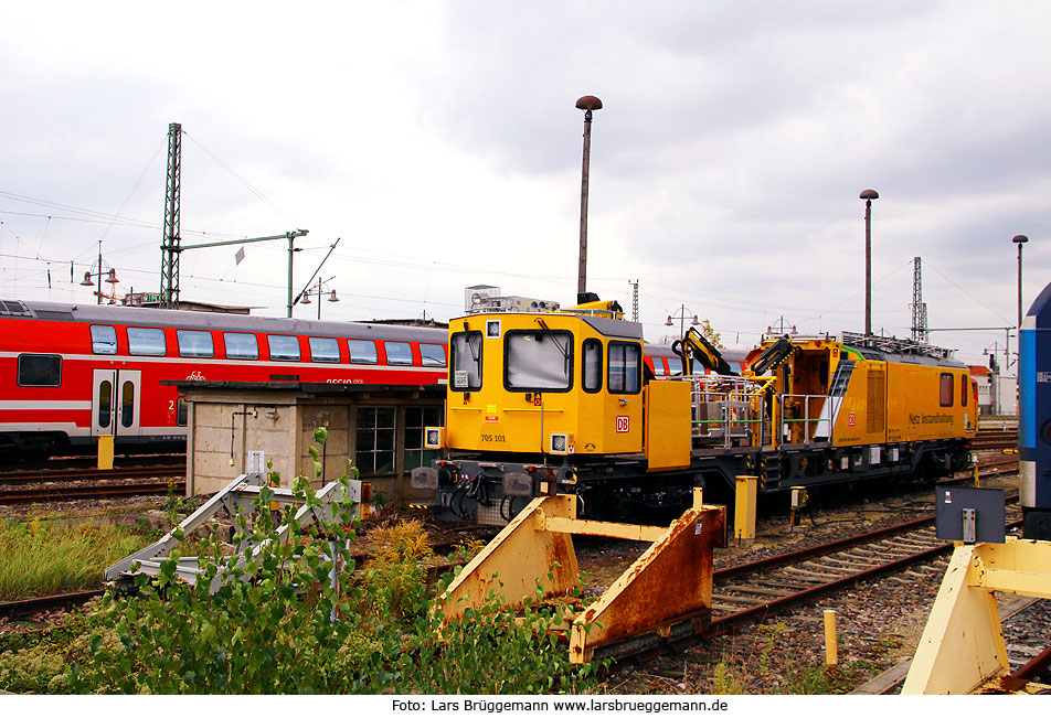 Der 705 101 in Dresden Hbf, bei dem 705 101 handelt es sich um ein Tunnelinstandhaltungsfahrzeug (TIF) der Deutschen Bahn AG.