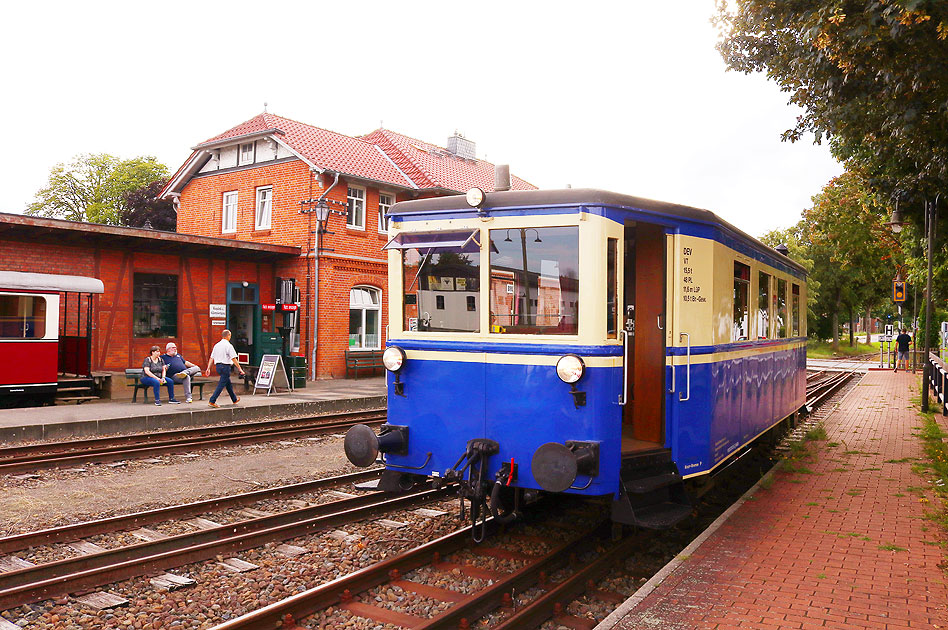 Zur bequemen An- und Abreise zur Museumsbahn fahren komfortable Normalspur-Dieseltriebwagen zu den Bahnhöfen Eystrup und Syke der Deutschen Bahn AG. Hier steht der T1 vom DEV. Der 88 PS starke T1 wurde 1936 von der Gothaer Waggonfabrik mit der Fabrik-Nummer 2550 an die Hoyaer Eisenbahn-Gesellschaft geliefert. Bis 1972 war der T1 bei der Hoyaer Eisenbahn im Einsatz. Seit 1985 ist er als Museumstriebwagen im Einsatz. Der T1 steht hier als Personenzug nach Eystrup, links im Bild das Bahnhofsgebäude vom Bahnhof Bahnhof Bruchhausen-Vilsen. Digi Foto: IMG_0917.JPG Digi Fotos: 0359, FP10 (D5/D8/+#23) Foto: Lars Brüggemann Interner Vermerk: Dieses Foto ist noch unter einem anderen Dateinamen online. Diese Seite ist ein Teil einer Online-Foto-Sammlung ähnlich einem Bildband, Sie können sich hier von Seite zu Seite durchklicken. Vielleicht suchen Sie aber Fotos für eine Heimatchronik, ein Fachbuch oder einen Fachartikel? Schreiben Sie mir! Email an Lars Brüggemann: mail@larsbrueggemann.de Dieses Angebot richtet sich nicht an Bildersammler zur kostenlosen Zusendung (für "private Zwecke"). Ebenso bitte ich um Verständnis das ich als Journalist keine kostenlosen Fotos für Veröffentlichungen anbiete (selbst bei so verheißungsvollen Angeboten wie: "selbstverständlich schreiben wir auch Ihren Namen dazu"). Es hilft auch nicht wenn Sie Fotos umsonst bekommen möchten, eine Anfrage so schwammig zu formulieren, dass aus dieser nicht hervor geht ob Sie zahlen wollen oder eben nicht. Ebenso biete ich keinen Versand von Originaldateien weder kostenlos noch gegen Bezahlung für Privatpersonen an, dieses Angebot beschränkt sich marktüblich auf den journalistischen Bereich. Bitte haben Sie Verständnis das Anfragen für kostenlose Fotos gewöhnlich nicht mehr beantwortet werden. Warum ich keine kostenlosen Fotos anbiete lesen Sie hier... zurück zur: Startseite |