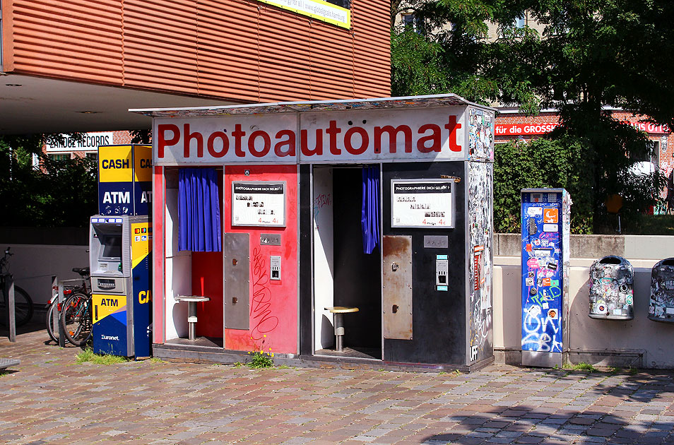 Tipp für Hamburger und Touristen die ihren Fotapparat zuhause vergessen haben: Es kann ja schon mal vorkommen das man seine Minolta XE-1, Agfa Click, Canon T70 oder Praktica MTL5 zuhause vergessen hat. Was auch passieren könnte ist das der Kodak Ektachrome oder der Orwo NP 22 schon voll ist. Gegenüber vom U-Bahn-Bahnhof Feldstraße in Hamburg gibt es auch für solche Fälle einen "Photoautomat". In dem Fotoautomat kann man sich selbst fotografieren lassen und die Fotos nach kurzer Wartezeit direkt mitnehmen. Jeder sollte sich an Passbildautomaten erinnern, wer das vergessen haben sollte? Einfach mal die Fotos in alten Personalausweisen ansehen! Und wer sich mit diesen historischen Fotofachbegriffen nicht mehr auskennt wird wohl einfach sein Smartphone zum fotografieren nehmen. Digi Foto: IMG_8098.JPG Digi Fotos: 0382, FP10 (D2/D7/#+25) Foto: Lars Brüggemann |