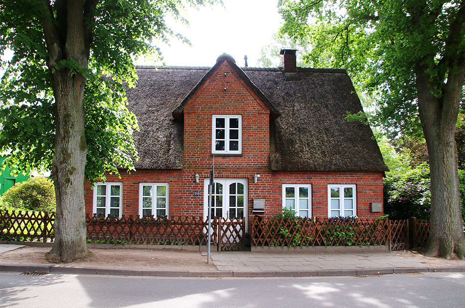 Die Postleitzahl von Sülldorf ist 22589: Der Sülldorfer Kirchenweg nördlich vom Bahnhof im Hamburger Stadtteil Sülldorf. Das Reetdachhaus im Bild Sülldorfer Kirchenweg 213 ist ein Kulturdenkmal. Digi Foto: IMG_9619.JPG Digi Fotos: 0296 (D28/D5/D2018) Foto: Lars Brüggemann Facebook-Seite Hamburg-Sülldorf - Fotos von larsbrueggemann.de |
