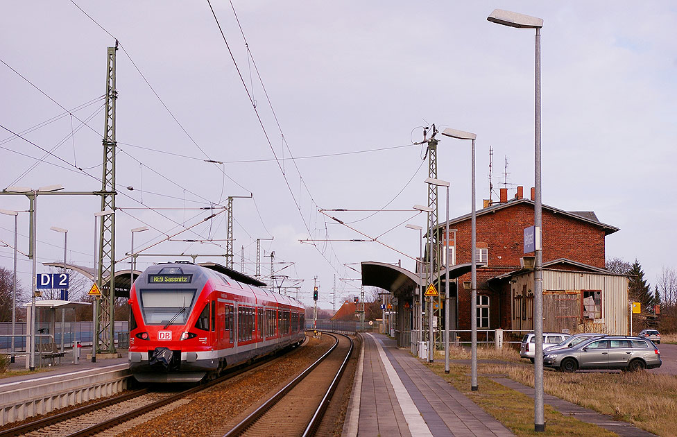 Mit Elektromobilität durch Deutschland: Im Bahnhof Bahnhof Velgast hält ein Triebwagen der Baureihe 429 auf der Fahrt von Rostock Hbf nach Sassnitz über Stralsund Hbf. Rechts im Bild das Bahnhofsgebäude von Velgast. Digi Foto: IMGP5182.JPG CD Digi Fotos: 0106 (D13/D3/agentur08) Foto: Lars Brüggemann Interner Vermerk: Dieses Foto ist noch unter einem anderen Dateinamen online. |