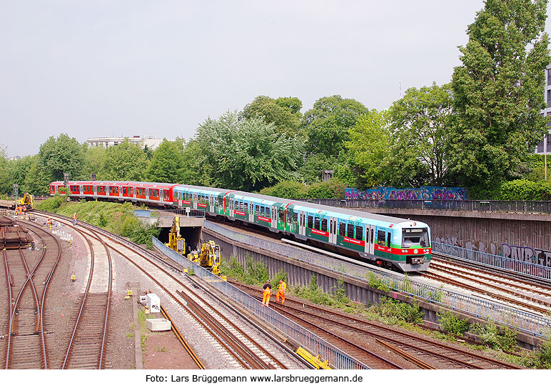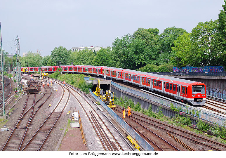 Ein S-Bahn-Vollzug mit der Werbe-S-Bahn für Hamburg als Umwelthauptstadt kommt vom Dammtorbahnhof in den Hamburger Hauptbahhof am 21. Mai 2011 eingefahren. Digi Foto: IMGP1135.JPG Digi Fotos: 0212 Foto: Lars Brüggemann |