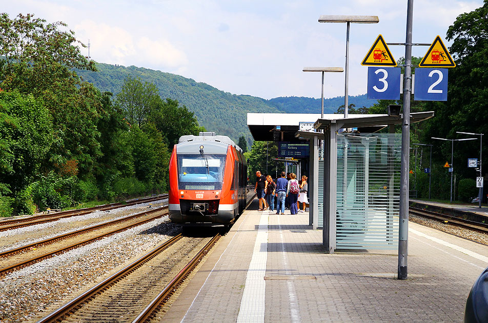 Im Bahnhof Hersbruck rechts der Pegnitz hält der Lint-Triebwagen 648 818 als Regionalbahn nach Nürnberg Hbf auf Gleis 3. Rechts am Bildrand der Hausbahnsteig mit Gleis 1. Digi Foto: IMG_6043.JPG Digi Fotos: 0298 (D9/D7/reise18) Foto: Lars Brüggemann |