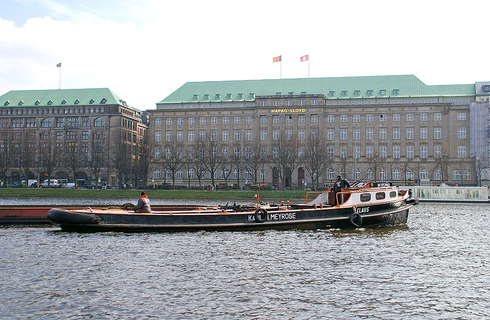 Barkassen sieht man nicht so häufig auf der Alster in Hamburg. Die Barkasse Claus auf der Hamburger Binnenalster vor dem Hapag-Lloyd-Gebäude. Digi Foto: IMGP5084.JPG Digi Fotos: 0211, FP2 (D1/D4/#+11) Foto: Lars Brüggemann |